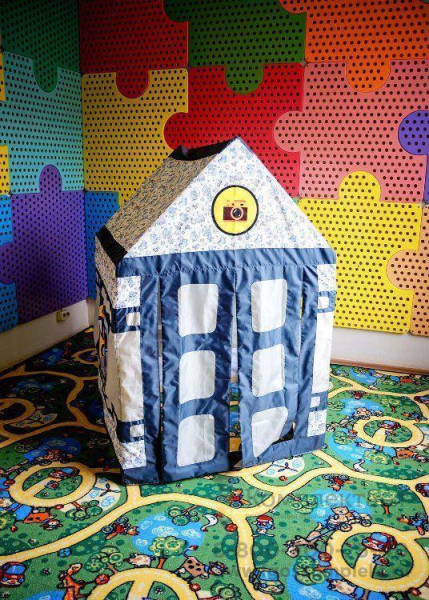 Чехол домика по мере необходимости стирают в теплой воде (не отбеливать!). В разобранном виде игра помещается в шкаф или подсобку.