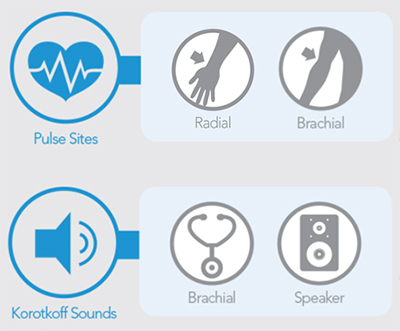 • аускультация тонов Короткова на плечевой артерии реальным стетоскопом