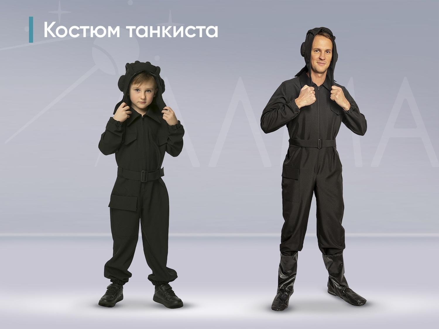 - Костюм танкиста (детский, подростковый, взрослый). Размеры: 104-110,116-122,128-134,140-146,152-158,164-170,176,182. Цвет: чёрный.